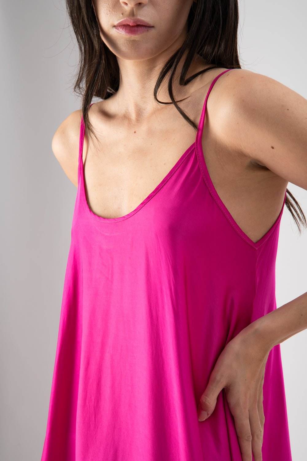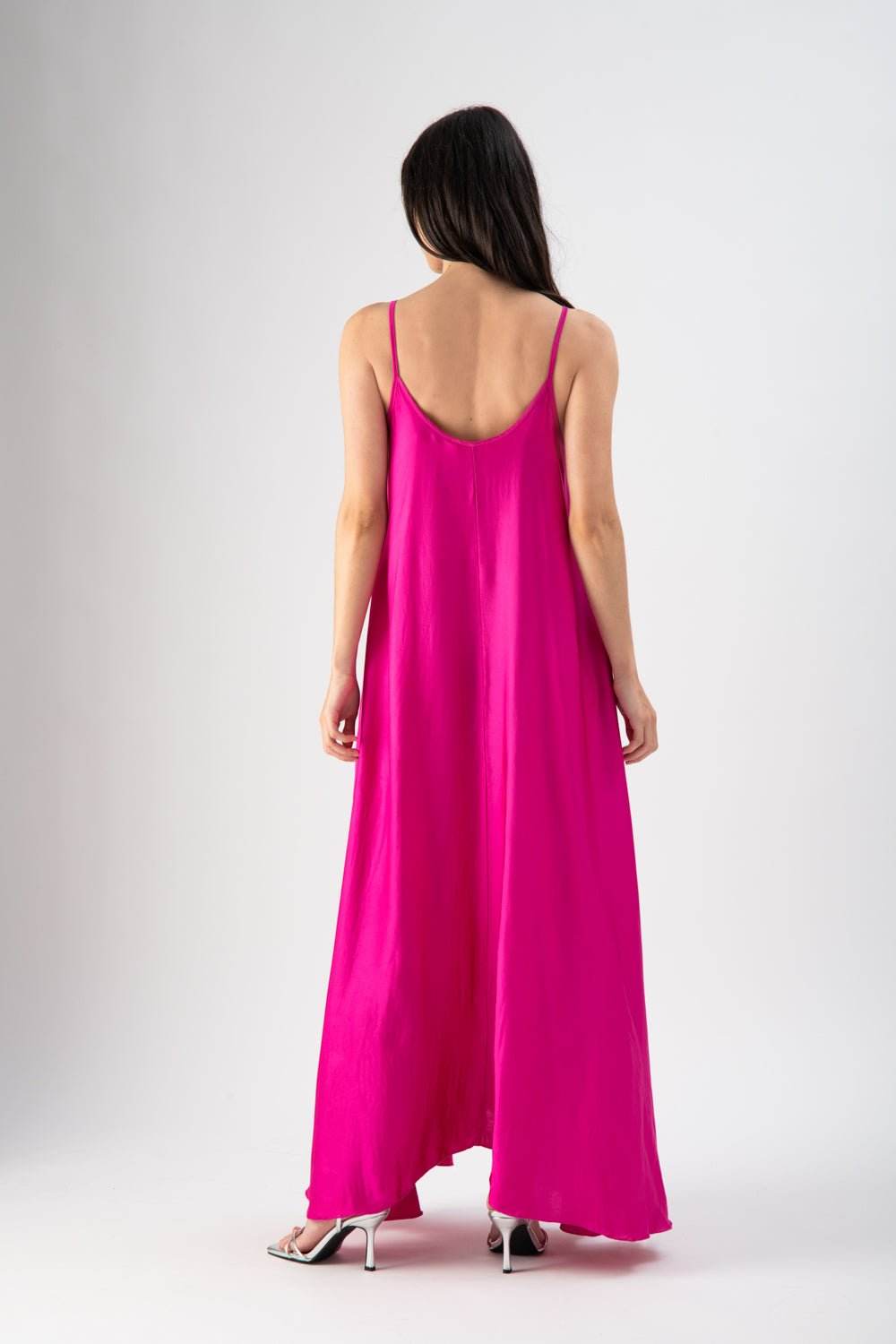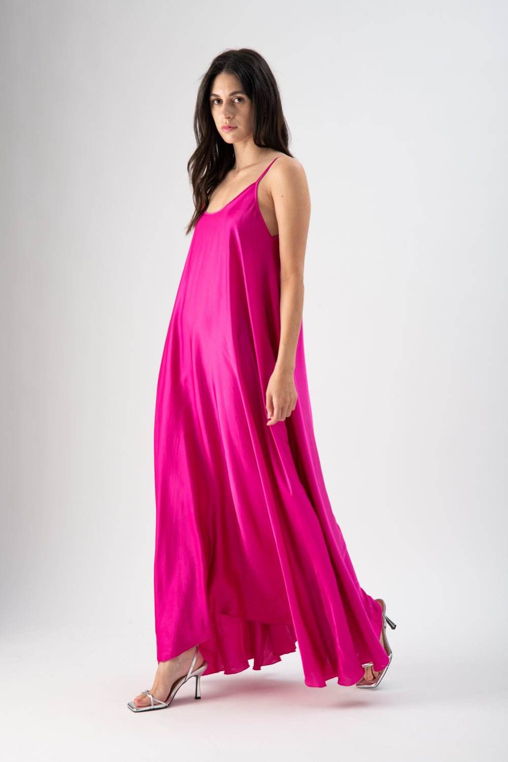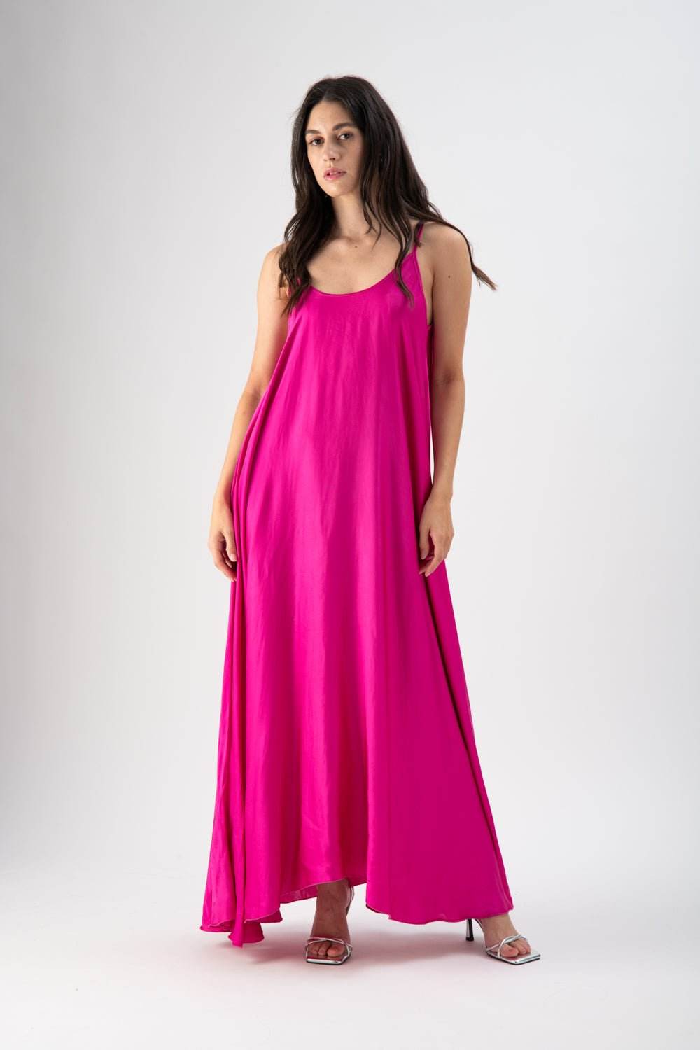 Abito lungo in viscosa con spalline effetto fluido