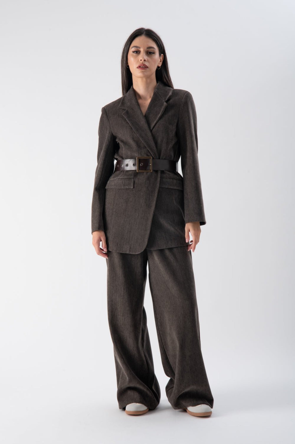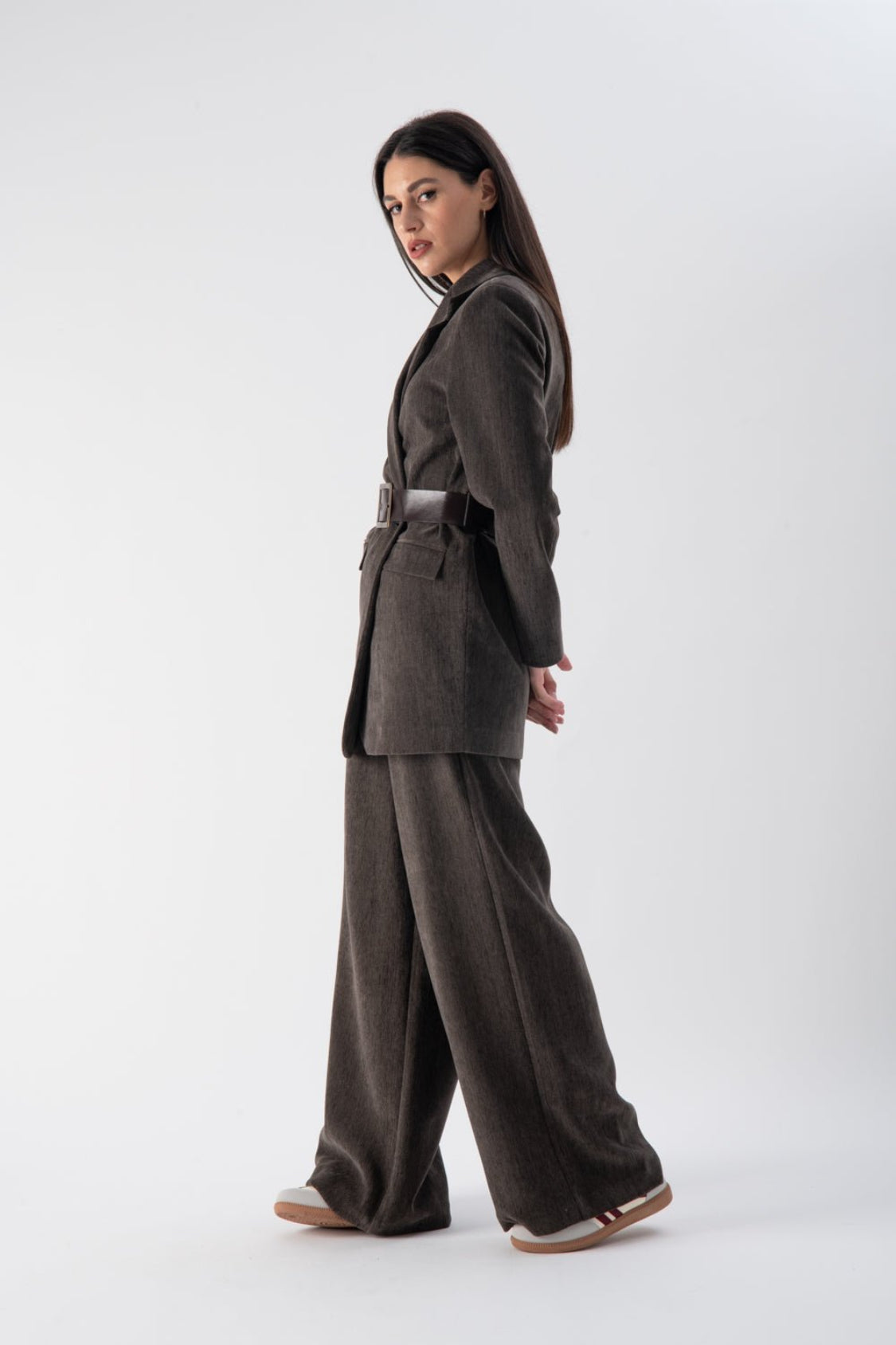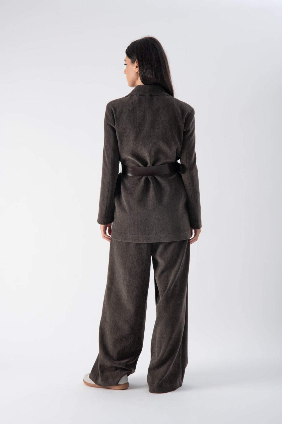 Coordinato con blazer in ciniglia con cintura taglio over e pantalone in ciniglia con coulisse in vita