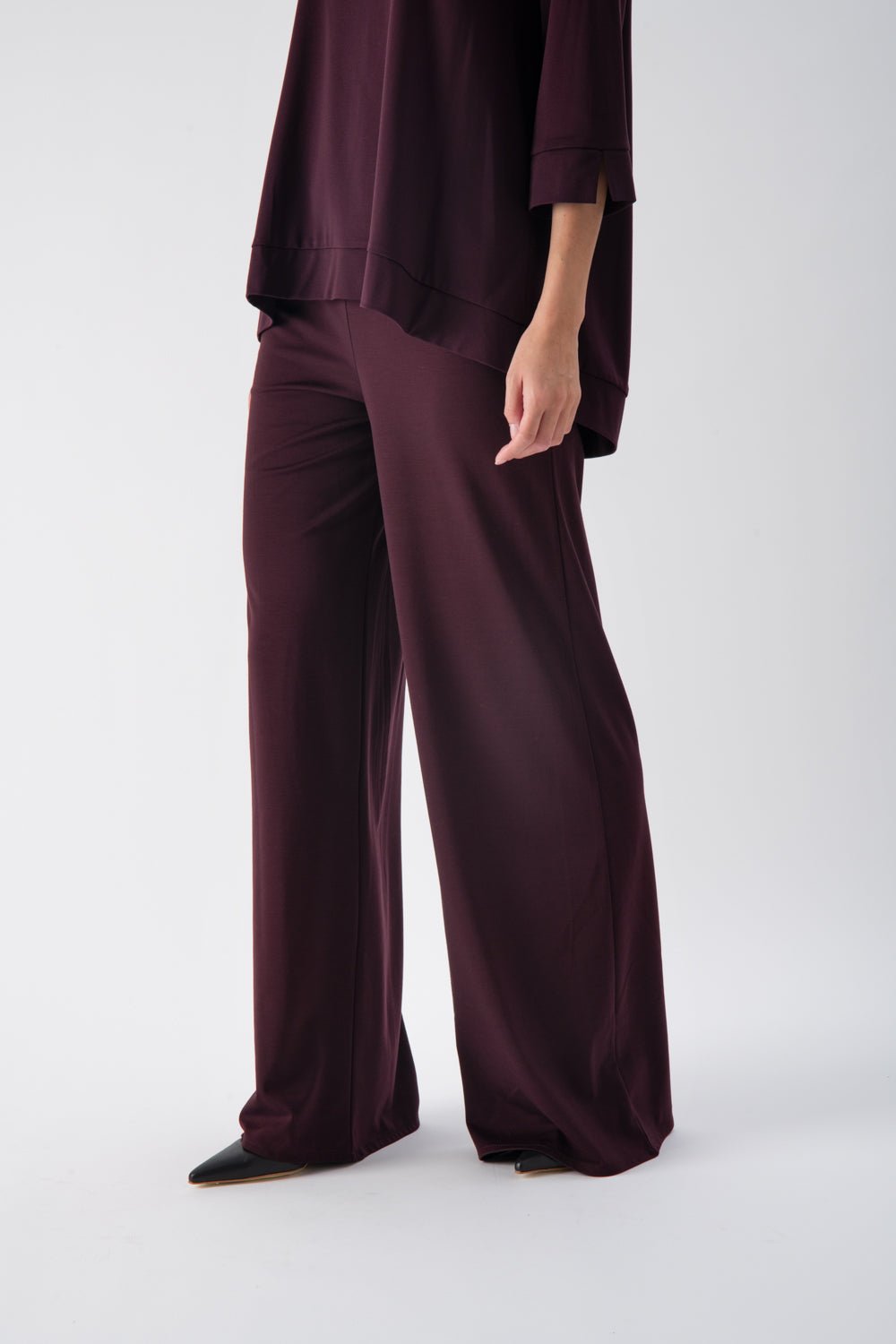 Coordinato con maglia soft touch con dettagli bordati e pantalone soft touch fitted con elastico in vita vino