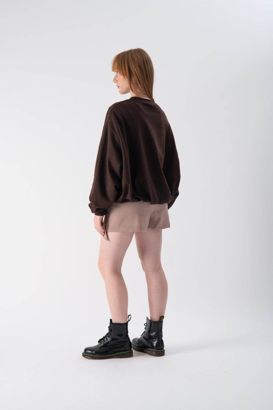 Felpa oversize in cotone a girocollo con fondo arricciato e maniche a palloncino