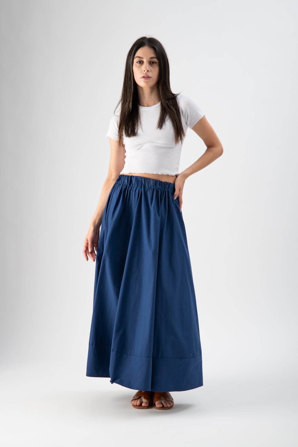 Gonna in popeline con elastico in vita e vestibilità morbida