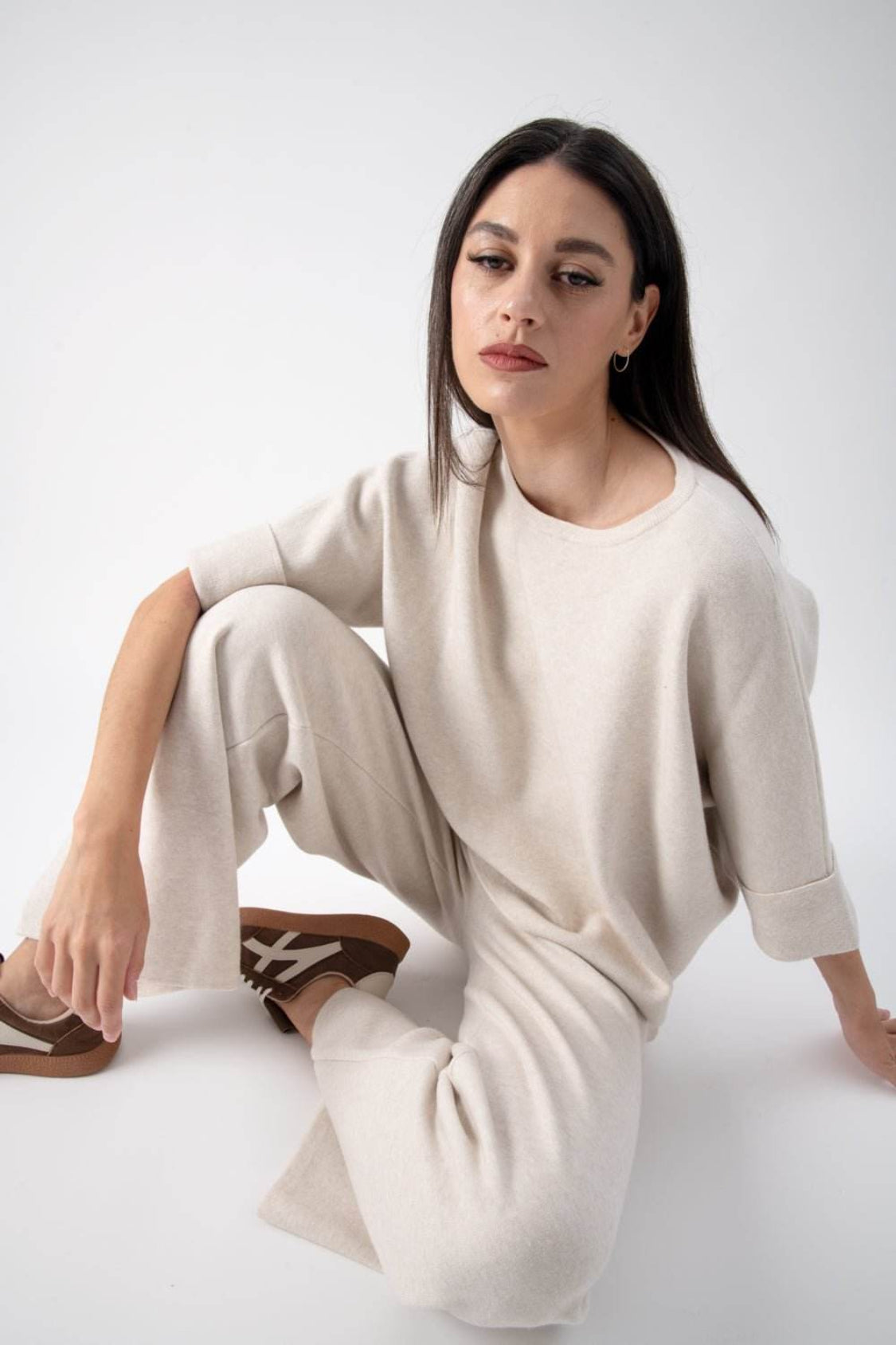 Maglia strutturata con risvolto su maniche a 3/4 e scollo rotondo