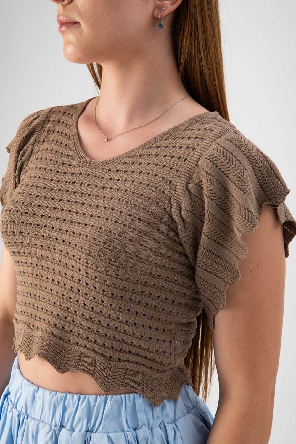 Maglia crop traforata con maniche a volant