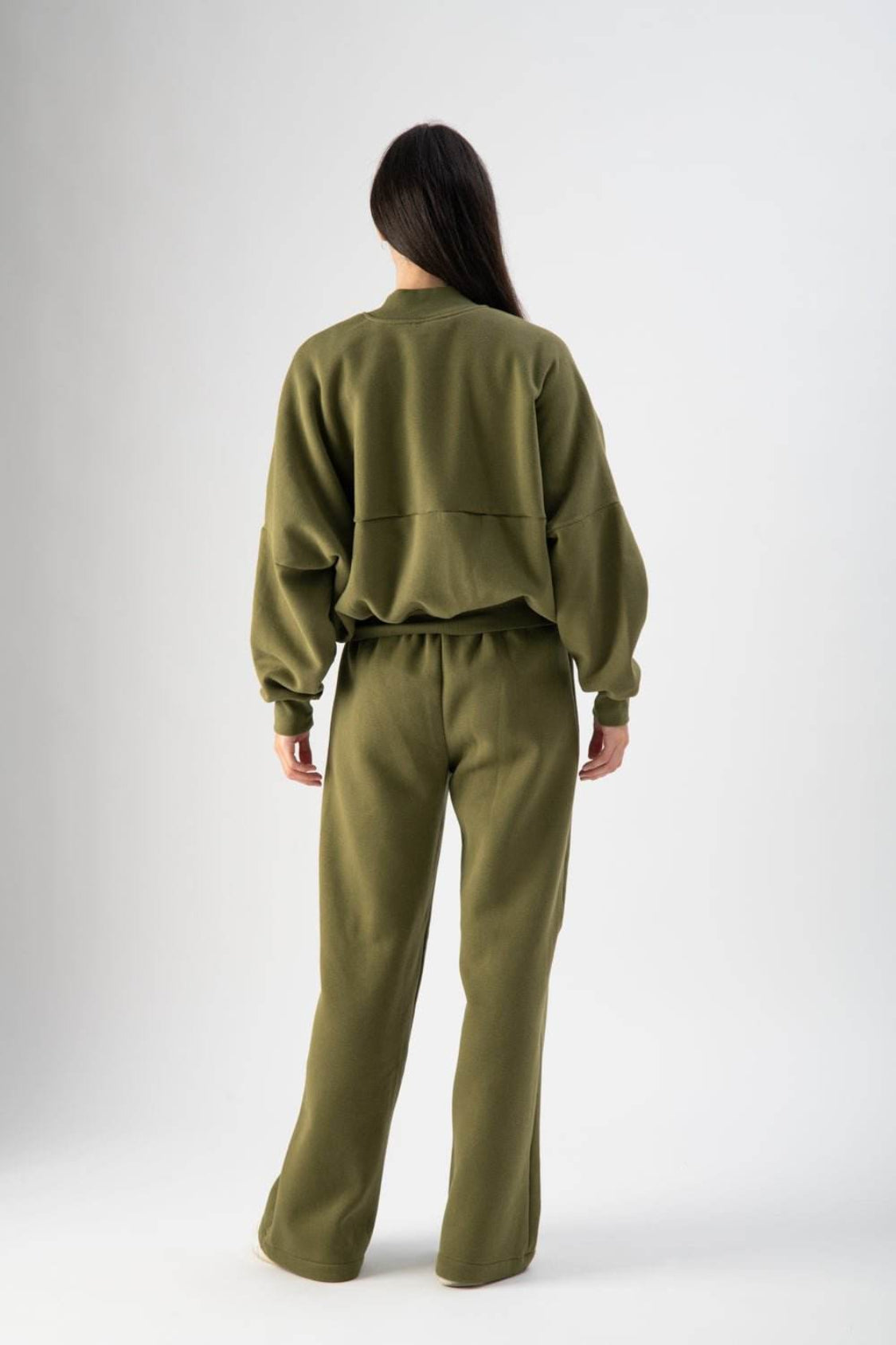 Tuta lunga a taglio dritto con elastico in vita e tasche.
